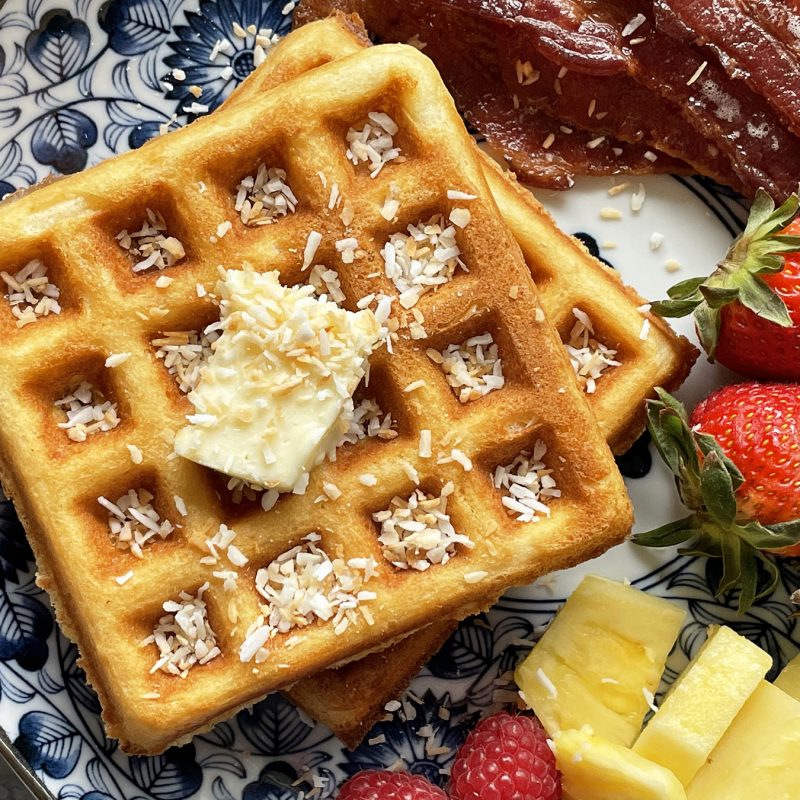 Spinach and Cottage Cheese Waffles AlmondsBreakfastGluten-freeRicottaSpinachWaffles Spinach and Cottage Cheese Waffles