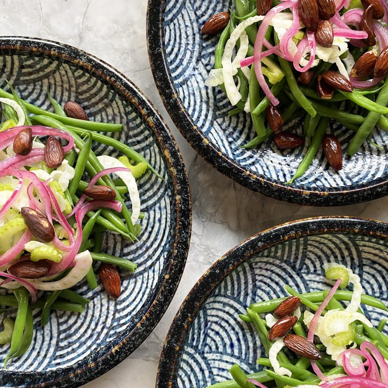 Green Bean, Pickled Onion and Fried Almond Salad AlmondsBeansPicklesSalad Green Bean, Pickled Onion and Fried Almond Salad