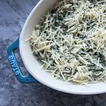 As the spinach mix is simmering, whisk together the eggs, cream, milk and nutmeg in a large bowl, then add in the cheese (I kept out a bit of the Gruyere for the top), and whisk again. When the spinach appears dry enough for you, spread the mix out into your prepared baking dish and then pour the cheese mix over top. I actually just used my hands to mix it all up and massage the ingredients together, that way I could also make sure all of the cheese and spinach was uniformly spread out. Sprinkle on any extra cheese you have left and bake for about 45 minutes until bubbling and golden. This was also super tasty left over!