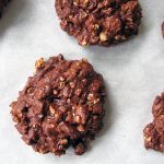 Change the whisk to the paddle attachment, turn the mixer on to low and then slowly add in the flour mix. Remove the bowl from the mixer and use a wooden spoon to stir in the chocolate chips and nuts – the dough will be quite soft. Using a 2-inch scoop, portion out the cookies onto your prepared pans, leaving at least an inch between (though they won’t spread much), and bake them immediately. Bake for 17 to 20 minutes, switching the pans halfway through – be very careful not to over bake (they should be shiny and look a bit underdone in the middles, but the edges should easily lift up). Allow the cookies to sit on the pans to cool completely before storing them.