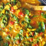 Place all of the ingredients for the curry paste in your food processor and blend until well chopped and combined – this is what you can make a day or two ahead (or have ready in the freezer, try a double batch!).To make the curry, melt the coconut oil in a large pan or skillet and cook the curry paste for about 5 minutes until very fragrant. Add the peppers and all of the tomatoes and cook for another few minutes until the vegetables have softened. Pour in the broth and coconut milk and simmer for about 30 minutes until the sauce reduces a bit and thickens, then add in the fish, cook for about 5 minutes (until it’s cooked through), then gently work in all of the greens and cilantro and finish the curry off by squeezing in the lemon or lime juice. We thoroughly enjoyed this in big bowls over brown basmati rice.