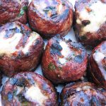 Heat up for barbecue or charcoal grill to high heat, and cook the pinwheels about 6 minutes per side until browned on all sides and the internal temperature is 135. If a couple of them are oddly shaped (like ours were, because we didn’t trim the ends), you may need to turn them a few extra times to allow them to cook evenly. Once done, give them a few minutes to rest before serving. We enjoyed these with mashed potatoes and a big salad.