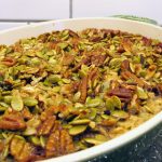 Preheat the oven to 375 and and lightly grease an 8 x 10(ish) casserole dish with coconut oil. Spread the berries evenly on the bottom of the casserole and set it aside. For the crunchy top layer, in a small bowl combine together the coconut oil, pepitas and pecans – I found it easiest to rub this mix altogether using my fingers…like a quick massage to make sure everything is coated – then set this mix aside.