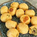 When you’re ready to bake them, preheat the oven to 400 and line a baking sheet with parchment. Place as many frozen cheddar olives as you wish on the baking sheet and bake for 20 to 25 minutes. Serve straight away with your favorite cocktail.