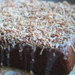 Allow the cake to cool in the pan for about a half hour then turn it out onto your favorite serving platter. Whisk together the 3 ‘glaze’ ingredients, drizzle the glaze evenly over all and then sprinkle on the remaining coconut. This was especially tasty while it was still a little bit warm.