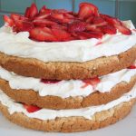 Assembly – Place one biscuit layer on a platter or cake stand, spread on about 1 1/2 cups of the whipped cream and then evenly add about 1/3 of the strawberries. Repeat with the remaining 2 layers. This will be a very tall cake! – but don’t worry, the ‘Cheater’s Whipped Cream’ does a great job of stabilizing it. Drizzle the juices from the berries over the whole cake or over individual slices as you serve them, and remember to keep the slices a reasonable size…this is a very hearty dessert and will feed a lot of people!