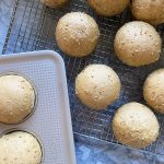 ***Update July 2020 – I decided to give buns a try for a barbecue and they worked out brilliantly – exact instructions, but weigh the dough and roll it into 24 equal balls for the final rising, and then baking in muffin tins. I’m sure a regular baking tray would work out just fine but the muffin tins make for perfectly presentable buns!***