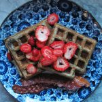 So tasty (especially with strawberries and maple syrup!). Borrowed from ‘Let’s Stay In’, by Ashley Rodriguez, this is another recipe that should just be automatically doubled – it barely made 3 (x4) waffles in our waffle maker – and remember….just about any breakfast is better with bacon – enjoy!