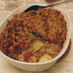 Spray a medium-sized casserole (2 L) and cover the bottom with half of the artichokes, then half of the tomato slices and then half of the breadcrumb mixture. Proceed with a second layer of all and then drizzle the melted butter over the top.