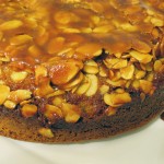 Allow the cake to cool in it’s pan for 5 to 10 minutes and then using oven mitts, invert the hot cake onto a plate. When I did this, most of the topping stayed in the pan, but because of the parchment paper, I was able to carefully lift in out, basically intact, and fit it onto the top of the cake. It’s very gooey! but worth it!