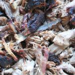 Trim the pork so that any fat is no more than 1/4-inch fat – if the fat is any thicker then the smoke won’t penetrate. Our go-to butcher Master Meats usually has this step mostly done, and therefore there’s hardly any prep on our end. Rub the meat all over with prepared mustard, sprinkle it generously with spice rub and get it onto the smoker. Smoke at approximately 225 to 250 degrees for 10-11 hours until the internal temperature is 195 to 200 degrees. All smoked meat is best if you give it time to rest (so add the resting time into your preparation calculations!) and we have a designated ‘smoked meat cooler’ where the meat is well wrapped in heavy foil, and then towels, and then tucked into the cooler for a couple of hours before ‘pulling’ and enjoying. For a pork shoulder, you know it’s going to be sweet perfection if the bone pulls out cleanly and easily.