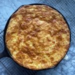 Bake for 45 to 50 minutes until the top is golden brown and the center springs back to a light touch. Allow the cornbread to sit and set in the skillet for about 20 minutes before slicing and serving.