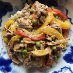 Add in the beef, peas and basil and cook uncovered while stirring until the beef is no longer pink (this should only take 2 or 3 minutes if your beef was sliced thinly enough), then stir in the lime juice and serve! We loved ours over basmati rice, but I think this would also be super tasty with some flat bread.