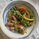 There are so many ways to make (and spell!) pork satay (or sate), but this is probably closer to what everyone is thinking of – and it’s super terrific while also being peanut-free! As is my usual, when I brought the pork tenderloins home, I trimmed and sliced them up for the freezer already marinated so that most of the work for this meal was already done. Another approach would be to simply double it all and freeze one uncooked batch for a later date – just don’t be alarmed if the coconut milk separates, you’ll be discarding the marinade anyway. Ricardo used Wowbutter for his satay sauce, but we’re SunButter lovers in our house – enjoy!
