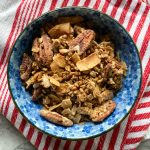 Another granola that we all really enjoyed. Borrowed from the Minimalist Baker, if you can’t find raw buckwheat groats then add the roasted ones (kasha) towards the end of your cooking time or the crunch will be overwhelming. I added more nuts and coconut (I usually do), and the original recipe also calls for any nut butter, so you can choose -enjoy!