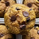 In your blender (or food processor), pulse the oats for several seconds until they’re mostly smooth. Add in everything else on top of the ground oats (except for the chocolate chips), and pulse again until the mix is well blended – you may need to scrape down the sides once or twice. Stir in the chocolate chips, if using, then scrape the batter evenly into your prepared muffin tin. Bake for about 15 minutes until the centers are set and bounce back to a light touch. Leave the muffins in the tin for about 5 minutes before turning them out onto a rack to cool completely before storing or freezing.
