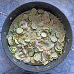 Using a large (non-stick) skillet, sauté the chicken in a bit of oil until it’s there’s no longer any pink showing – it will cook a few minutes more in the curry sauce at the end. Remove it to a plate and set aside. Using the same skillet, combine about 1 cup of the coconut milk with the green curry paste, basil and cilantro over medium heat. Bring to a simmer while stirring and allow it to cook for about 10 minutes until the sauce reduces a titch and the flavors have had time to come together. Add in the remaining coconut milk, brown sugar and fish sauce, bring the sauce back to a simmer and leave it to cook for a few minutes more. While you’re doing this, it’s an ideal time for the zucchini to be roasting and the rice to be cooking.