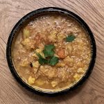 Topping suggestions – heavy cream, yogurt, sour cream, cooked rice, fresh cilantro, lime slices, pita or naan