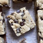 Scrape the batter into your prepared pan and pat it down evenly with the back of a measuring cup. Bake for 20 to 25 minutes until the edges are lightly browned and the middle is set, then leave the pan on a rack to cook completely before removing the bars (using the parchment handles) to a cutting board to slice and serve. Garnish with salt as you wish and do your best to share!