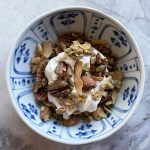 Bake for about 45 minutes, stirring the granola at 15 minute intervals, until it’s a lovely golden brown all over. Leave the granola on the baking sheet, stirring on occasion as it cools, until it cools completely, before you put it into a airtight container to store.