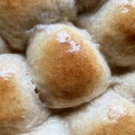 Work each portion into a ball by rolling the dough in your palm, steering with your fingers and pinching in the bottom seam. Place into your prepared pan, 3 the short way and 5 the long way, making sure to place each seam side down with a smooth top. Once all of the buns are rolled, cover the dish loosely with plastic wrap and let rise for another hour and a half until almost doubled in size again and the buns spring back a titch to a light finger press. **This is the point where the rolls could be refrigerated over night as long as they’re given an hour or so sitting out to come to room temperature.**