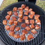 Get your barbeque sauce ready – a slightly sweeter sauce works well for this! Transfer the pork belly cubes onto a large aluminum drip pan, cover the aluminum pan with tin foil and place the covered pan into your smoker for another 1 1/2 hours. With 30 minutes left in the cook, pour the barbecue sauce over the pork belly burnt ends and mix until all cubes are evenly coated. Check for doneness – 200°F or simply poke one of the bigger cubes with a toothpick and if it slides in like butter, it’s done.