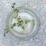 Measure and add all but the extra twig of thyme for garnish to your shaker and gently muddle the 2 thyme sprigs before adding any ice. Add ice and shake for about 15 seconds then strain into a rocks glass over fresh ice. Garnish as you wish (a lemon slice would also be nice), and start your sipping!