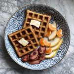 Such a fabulous find! You know a cookbook is a great one when after all of my thousands of hours of recipe perusing, I can find an original waffle recipe, that’s eye-rolling good! Borrowed from, ‘The Bite Me Balance Cookbook’, by Julie Albert and Lisa Gnat, the recipe below makes a perfect 3 sets of 4 waffles in my maker. The authors served theirs with a lovely apple cinnamon concoction but personally, all I need is a lotta butta and the rest of the family loves their maple syrup – enjoy!
