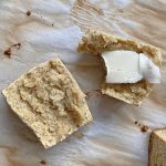 Using your food processor, pulse together both flours, nutritional yeast, salt and baking powder a couple of times and then drop in the butter cubes and pulse again (several times) until the mix becomes pebbly.