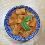 Cook the rigatoni in well salted water until just al dente – the pasta will soak up the sauce and continue to soften up. Drain the pasta well but save 3 to 4 cups of the pasta water and set it aside.