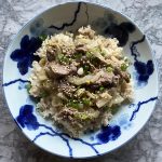 Add the steak and all accumulated juices back into the stir fry, stir well until all is warmed through and then serve up over rice in bowls and garnish as you wish!
