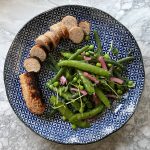 An incredibly pretty and incredibly tasty salad that friends treated us with this past summer. Borrowed from, ‘Plenty’, by Yotam Ottolenghi, it’s also flexible with the greens that you choose and pickled onions are a fabulous addition – enjoy!