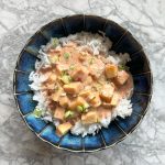 If you’ve worked in batches, then add all of the paneer back into the pan, whisk the sauce once more and pour it all in. Heat over medium-low until warmed through…taste for seasonings (usually a titch more salt or sugar is needed), bring it all just to a boil and then dinner is ready. We love ours straight up over rice with some garnish and some roasted vegetables.