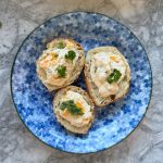Scrape all into your prepared casserole, sprinkle with some extra cheese and bake for about 30 minutes until it’s hot all the way through and bubbling around the edges. Serve warm!