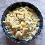 Stir in the cream, broth, Parmesan and corn, give this all a minute to warm through, then add in all of the (hot) pasta. Toss to coat and decide here if you need more sauce – add pasta water as you wish. I used the whole cup because I love when al dente pasta has time to soak up all of the flavor-filled saucy goodness.