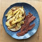 True sour cream pancakes, slathered in a magical caramelized apple/cardamom sauce…this could only have been better if I’d had enough sour cream to make the maple sour cream. Borrowed from NYT Cooking, the sour cream seems excessive, but everything here is perfect – enjoy!