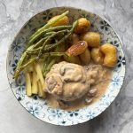 For serving – roasted or mashed potatoes, crusty bread, steamed rice and/or roasted vegetables