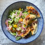 your favorite dumplings/gyoza (I planned for 6 per salad) – steamed then pan-fried until crispy