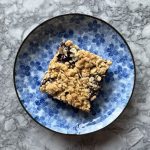 Pour and spread the filling evenly over the crust and disperse the cherries so they’re in a single layer. Stir the extra 2 tablespoons of oats into the remaining crust mix and then crumble evenly over the filling – I found the mixing and crumbling easiest to do with my hands – and then lightly press the topping down using a spatula or another flat utensil.