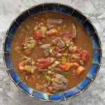 Add the barley and simmer for another 30 to 45 minutes until the barley is tender. If using short ribs, remove them now, trim them of fat and bones and add the meat back in.