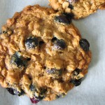 Cream together the butter and sugar and then add in the egg and vanilla. Combine the dry ingredients in a small bowl and then add into the cookie mix and combine well. Add in the nuts and then carefully fold in the blueberries.