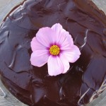 Saturday, Brock and I had a few of our friends over for a sushi night and I had fun making a couple of desserts during the week. This one is adapted from Ina Garten’s Barefoot Contessa Parties! – and the first adaptation for next time will be to use a 9-inch round pan (the 8-inch that it called for ran over). Very tasty though – and worth the mess in the end. I would say it’s more of a rich chocolate dessert than an actual cake and I made it the day before, wrapped it well and put it in the fridge and glazed it on the day I served it.