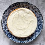 For the icing – whisk everything except for the lemon strips together in a large bowl until smooth. Place one cake layer on your serving platter and spread on half of the icing – it doesn’t all need to be covered, it looks lovely when it just starts to spill over the sides. Top with the second cake layer and spread on the rest of the icing, topping with some lemon rind if you wish.