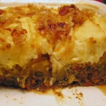 I saw this on the Food Network on Chuck’s Day Off and it tastes as good as it looked on TV – it’s a lot of prep, but a fair potion of it can be done at least a day ahead. On Thursday Brock made up some burgers and some some his guacamole and we enjoyed the Shepherd’s Pie with some barbecued sausage, pickled beets and a salad on Friday night with some friends.