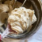 You can either make this way ahead and allow it to naturally come to room temperature, or you can leave it for a half hour or so, and then place the pot into an ice bath (a larger bowl, or your kitchen sink filled with ice), and then add in the icing sugar and use electric beaters to blend it. Either way it should come out fluffy and perfect – if it’s too thin, add a bit more icing sugar (this will also happen if the original mixture is too warm) or if it’s too thick add another splash of milk and beat again.