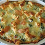 I saw an interesting strata recipe in a magazine (at a doctor’s office no less) but then after some research decided that this was the one that I wanted to try. It’s adapted from Gourmet magazine, and thankfully most of their recipes are still accessible online – just remember that this should be put together the night before. The original recipe called for only 1 package of spinach, and the only other thing I’d consider next time would be to make this exact amount, but use my large lasagna pan – the crispy bits are the best part. We enjoyed this for Sunday brunch with some smoked sausage, watermelon and a coffee cake.