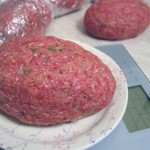 Place all of the ingredients in a large bowl and give it a good mix with a hardy wooden spoon. You’ll then have to get in there with both hands and work at it until it’s all well combined. Shape into loaves – either 2 meal-sized or 4 to 5, 1-ish-pounders and either wrap them well and freeze them or get ready to cook.