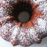 Preheat the oven to 350 and grease your bundt pan. In a large bowl, whisk together the flours, baking powder, baking soda, salt and ground ginger and set aside.