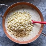 Direct from the Best of Bridge, this is a brilliant accompaniment to a ham and green salad for a large crowd. I jigged the recipe somewhat and what I have below works perfectly in a large, 9 x 13 lasagna pan…though halving it and using a regular 9 x 13 (less cooking time) would also work just fine – enjoy!