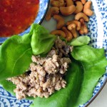 Spoon the chicken mixture onto lettuce leaves, garnish with cashews and dip as you wish in the chili sauce – these are also really tasty if the chicken is cold.